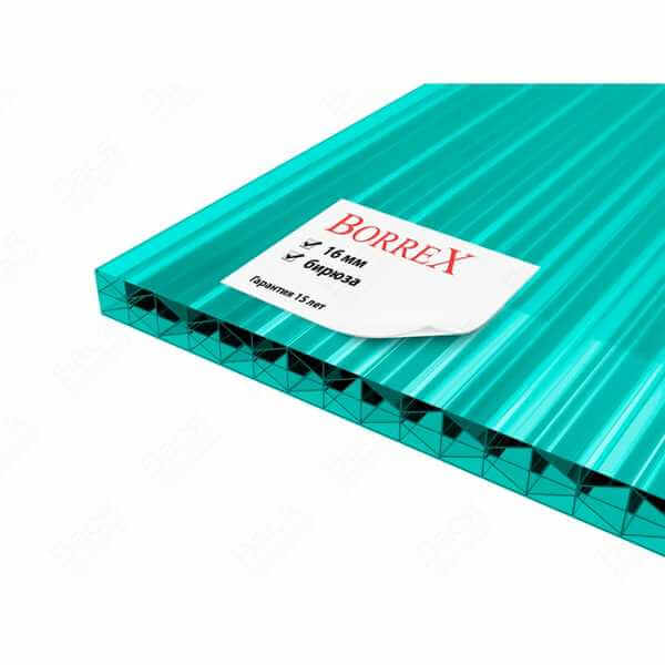 Сотовый поликарбонат 16 мм BORREX бирюза 2100х12000 мм