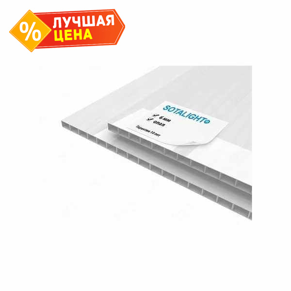 Сотовый поликарбонат 6 мм SOTALIGHT опал 2100х12000 мм