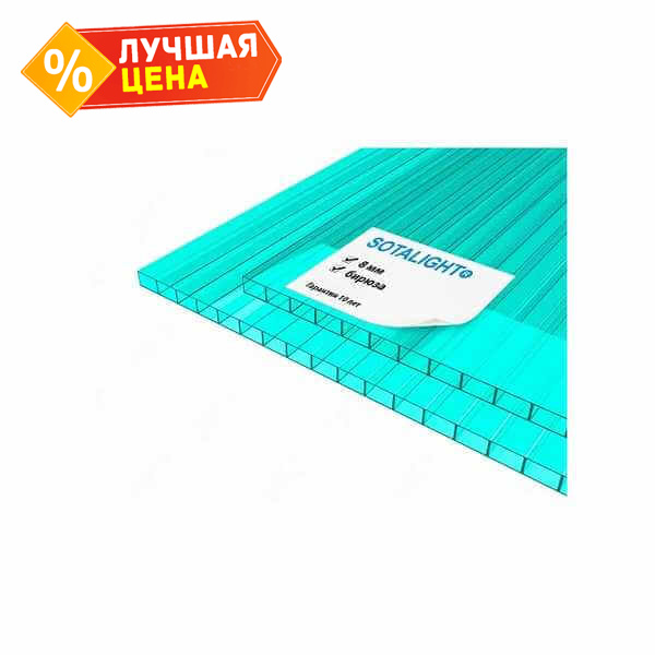 Сотовый поликарбонат 8 мм SOTALIGHT бирюза 2100х12000 мм