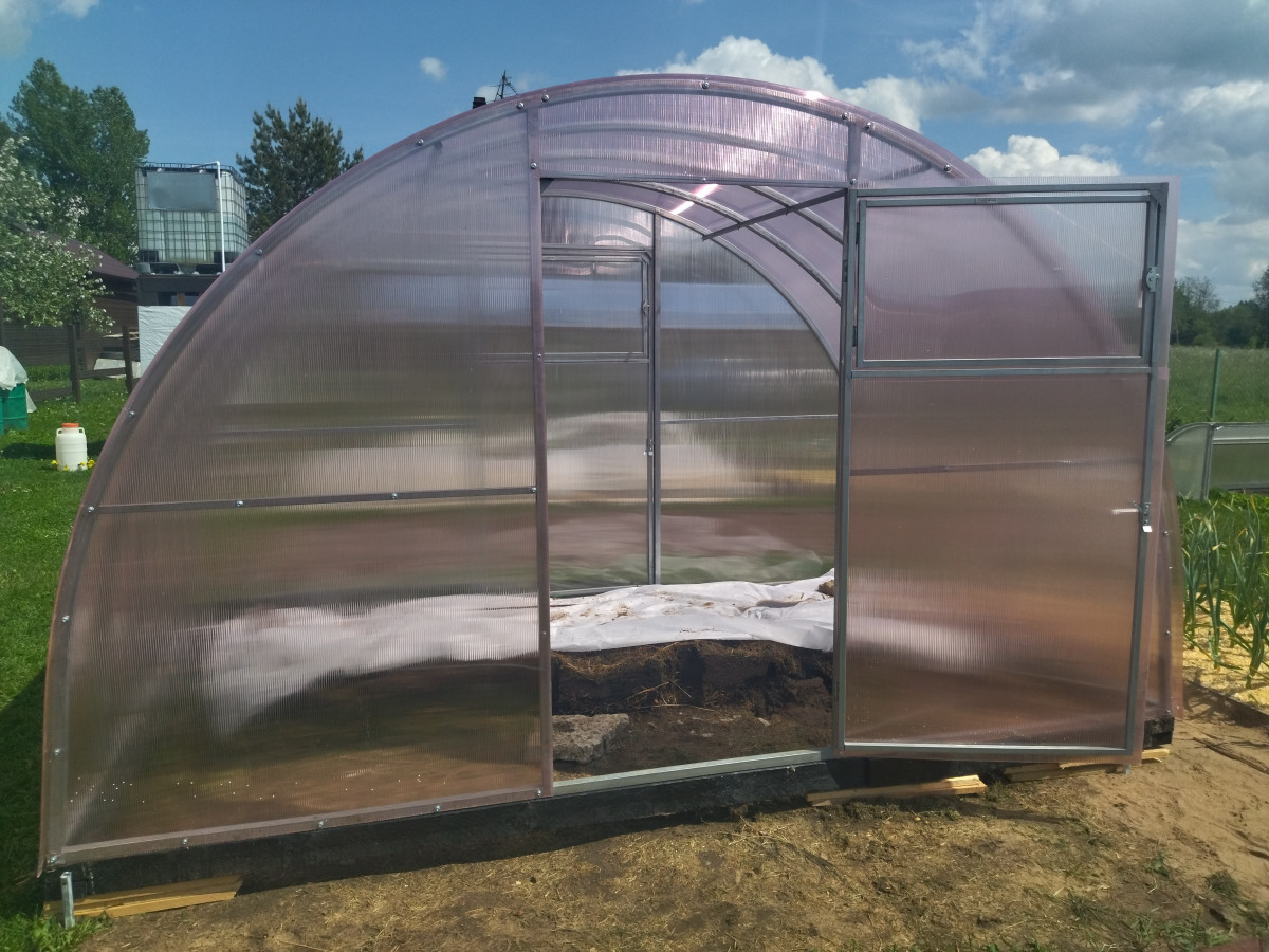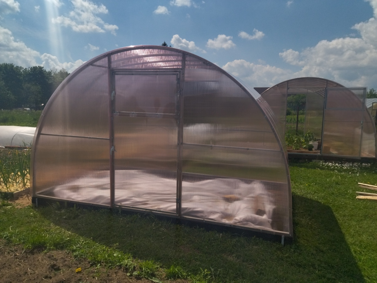 • максимальная ширина теплицы позволяет организовать до 3 широких грядок и 2 проходов в ней