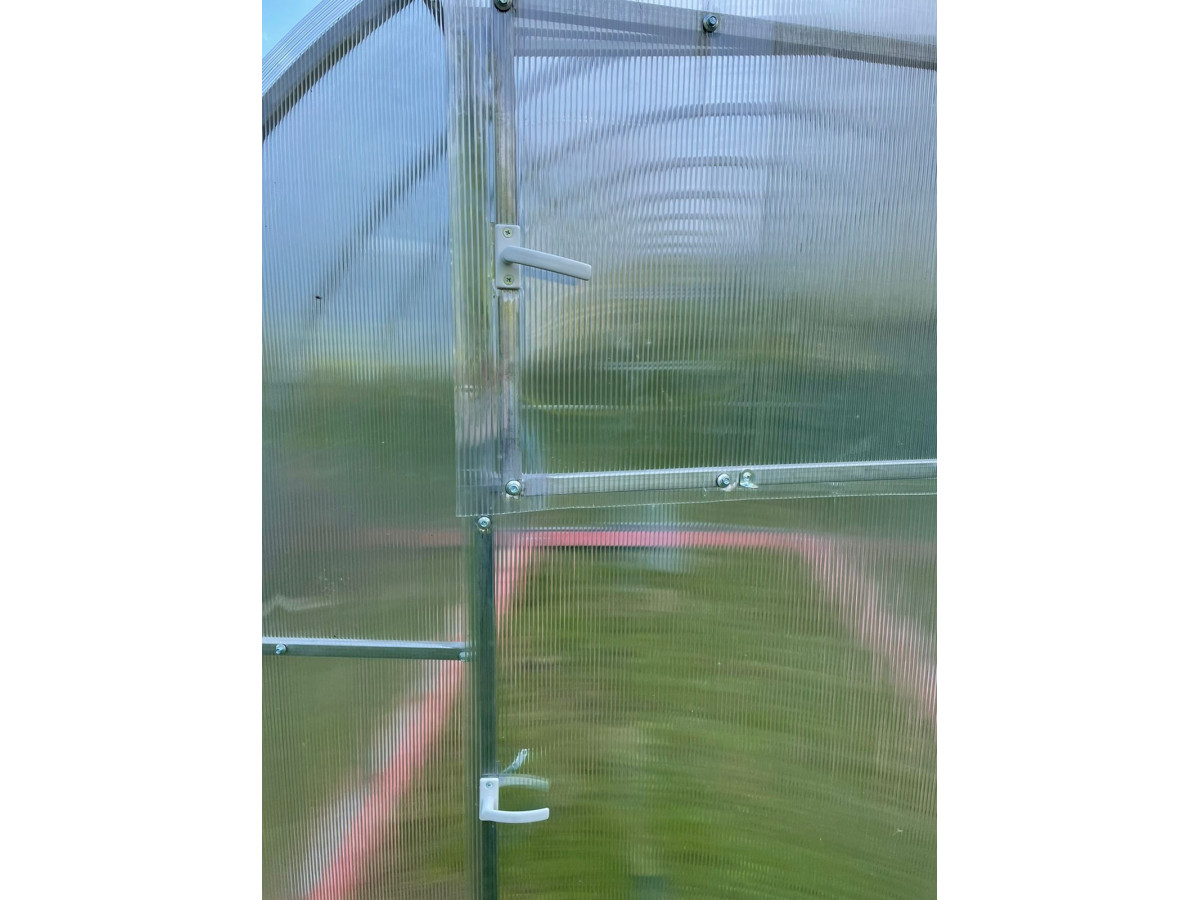 • практичная конструкция: 2 двери и 2 форточки обеспечивают легкий доступ в теплицу и ее проветривание. Размер дверей 171х89 cм, размер форточек в дверях 48х83 см