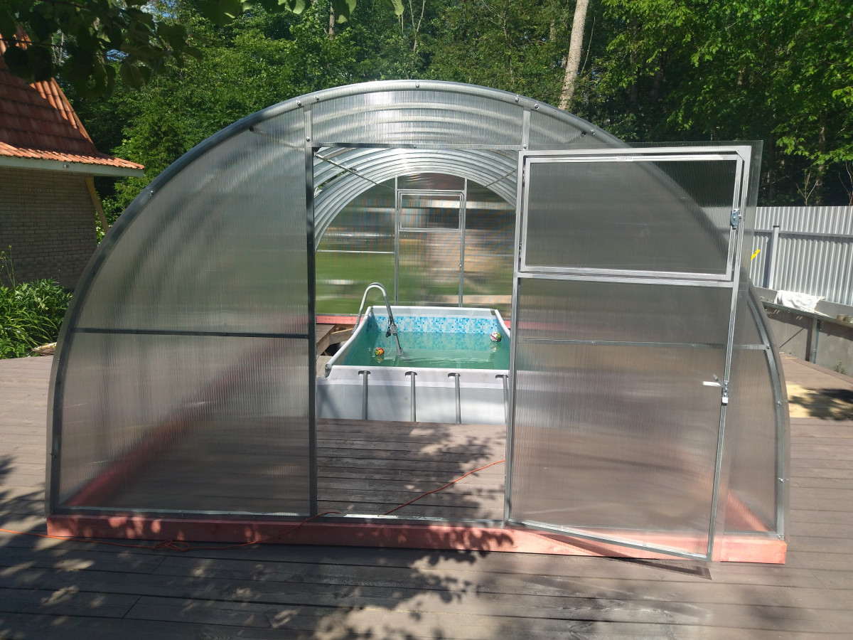 В разобранном виде теплица состоит из отдельных сварных рам в виде дуги.