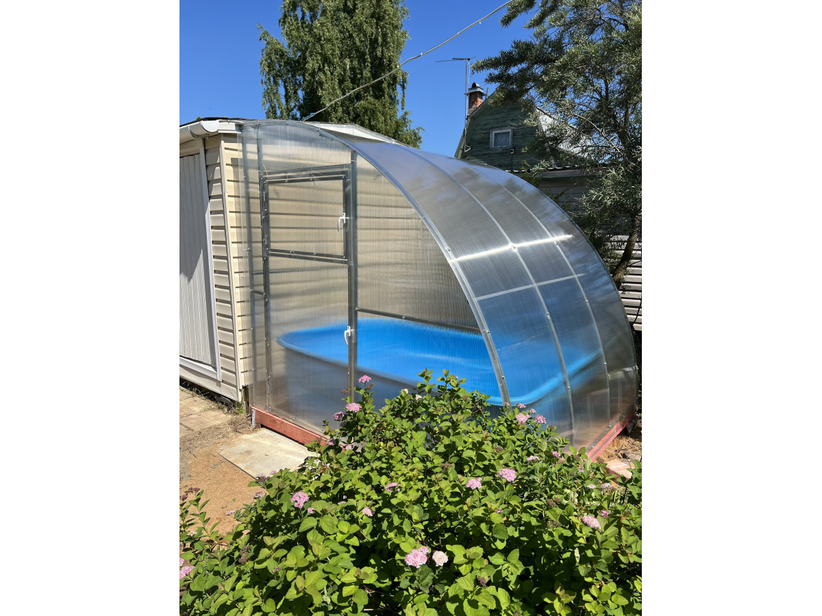 • поликарбонат толщиной 4 мм (в транспортном состоянии свёрнутые в рулон листы имеют диаметр до 80 см и длину 2.1 м)