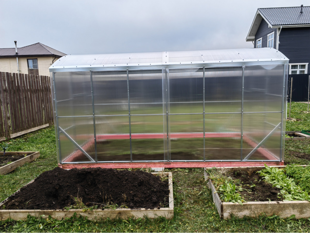 Теплица из поликарбоната Усиленная Прямостенная 2,5х4 h=2.1 м профиль 20х40 мм