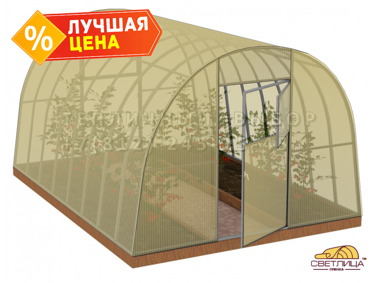 • укрывной материал - легендарная пленка «Светлица» толщиной 150 мкм, имеет уникальный состав, который делает ее прочной, эластичной и долговечной (не менее 7 лет без снятия на зиму)