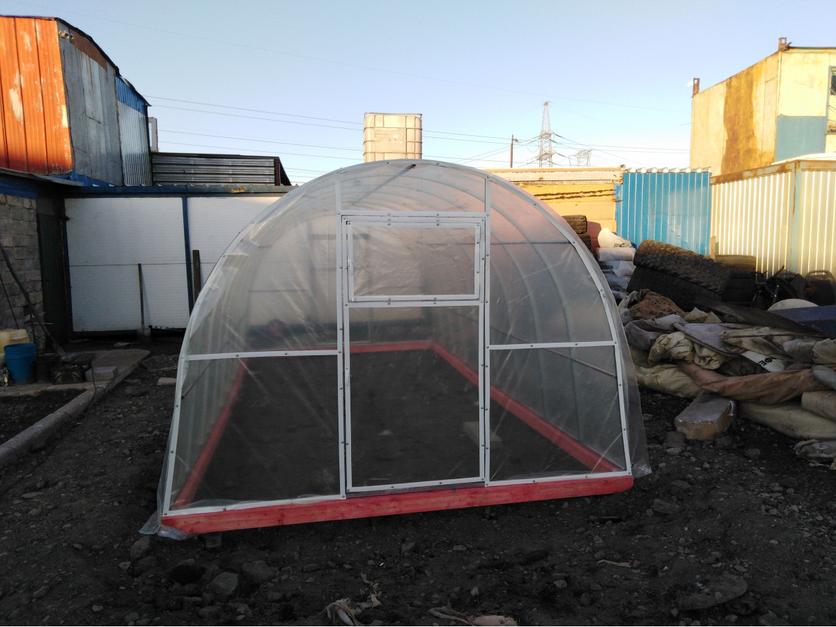 В разобранном виде теплица состоит из отдельных сварных рам в виде дуги.